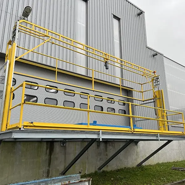 - Sécurisation des transferts de palettes, conforme aux normes européennes (EN 14122-3, TÜV, CE)